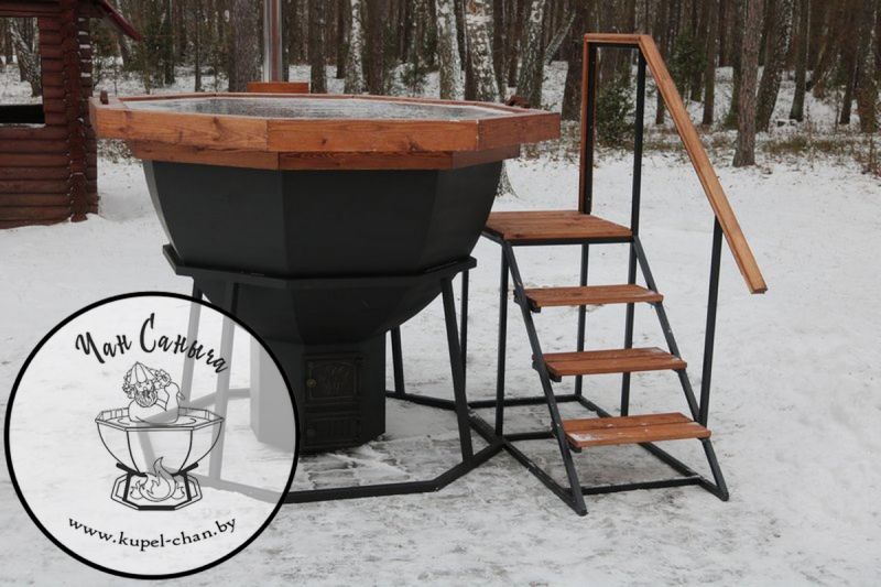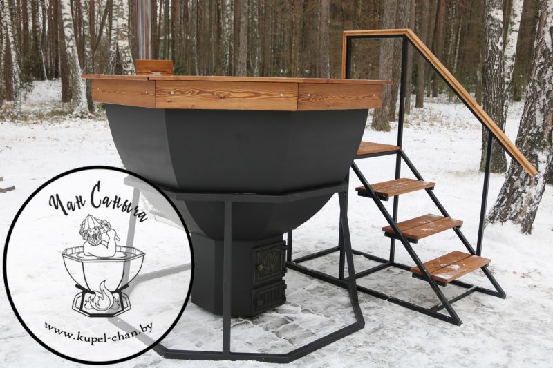 Банный чан — это металлическая чаша (чаще из нержавеющей стали), наполненная водой и подогреваемая с помощью огня или встроенной печи. Температура воды обычно достигает комфортных 38–42°C, что создает эффект природного горячего источника прямо у вас на участке. Такой формат отдыха позволяет расслабиться, восстановить силы и насладиться атмосферой уюта в любое время года.